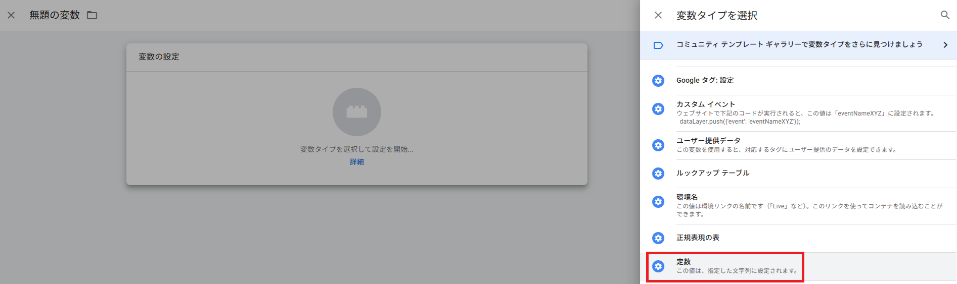 ユーザー定義変数から定数を選択